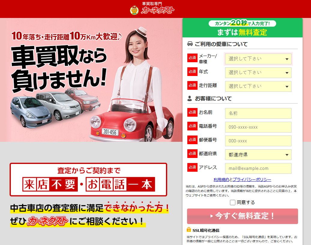 • 査定から契約、引き取りのすべてがフォーム入力+電話で完結 → スピーディ